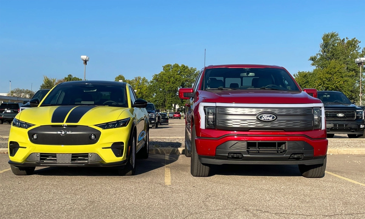 Bán tải điện F-150 Lightning (phải) và crossover điện Mustang Mach-E đều của Ford. Ảnh: Macheroadtrip
