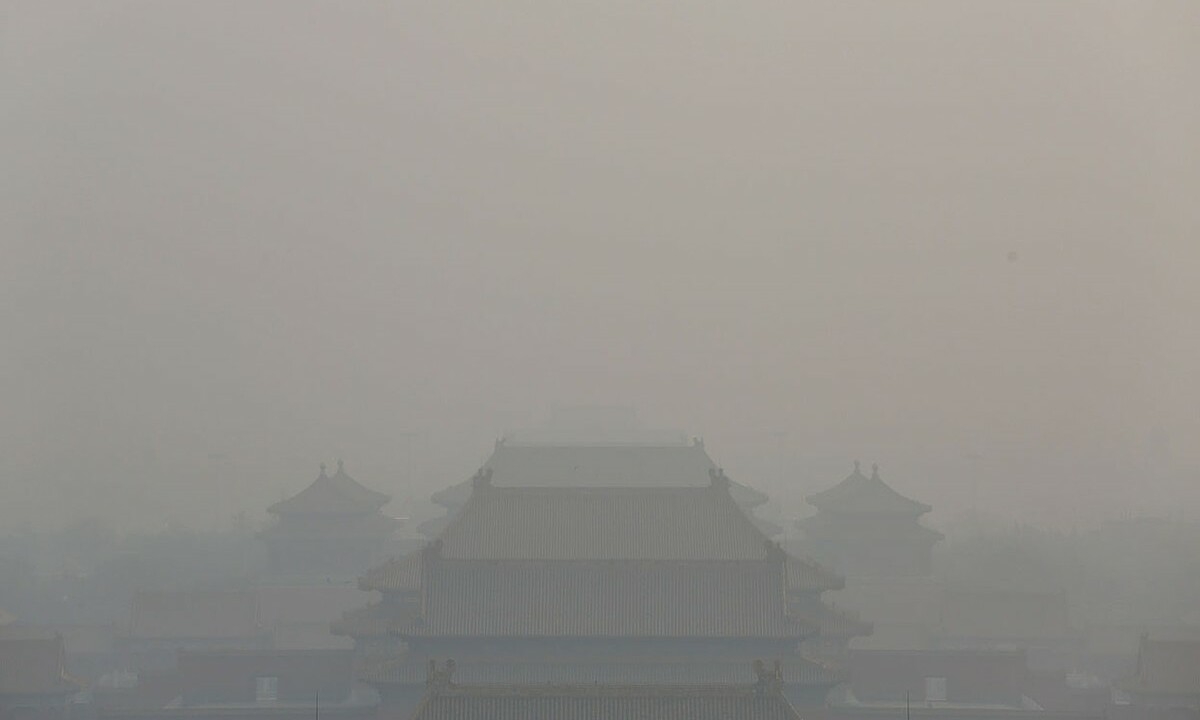 Tử Cấm Thành ở Bắc Kinh bị che mờ bởi lớp khói mù dày đặc vào năm 2013. Ảnh: Feng Li