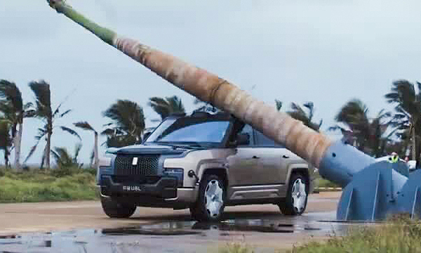 Nhà sản xuất ôtô Trung Quốc dàn dựng một bài kiểm tra độ bền theo phong cách điện ảnh: thả một cây cọ thẳng lên nóc xe U8L – phiên bản kéo dài của U8 – để chứng minh độ bền thực sự của chiếc SUV hạng sang cỡ lớn.